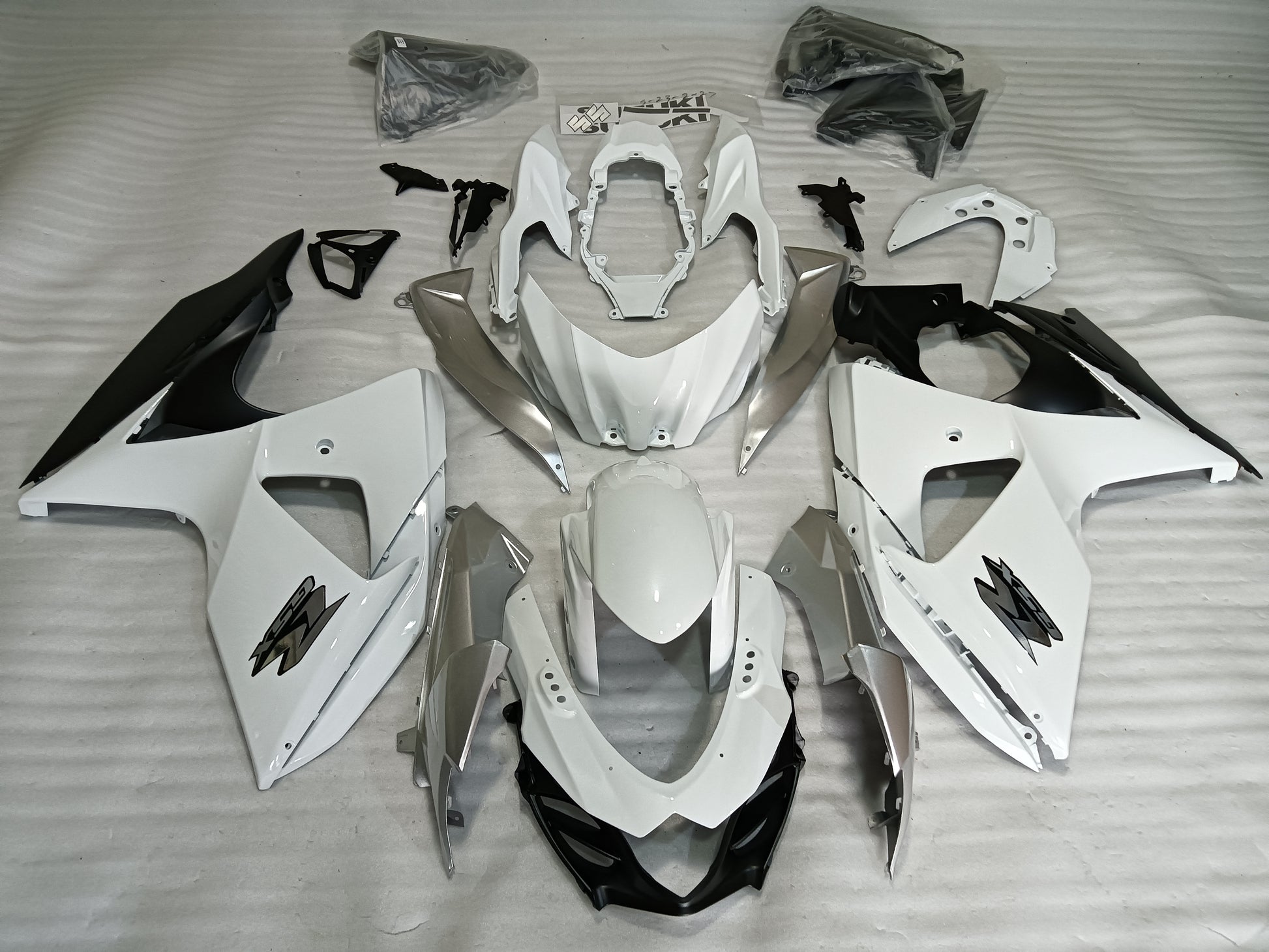 - Suzuki GSX-R 1000 2009 - 2016 White Silver Fairing Kit